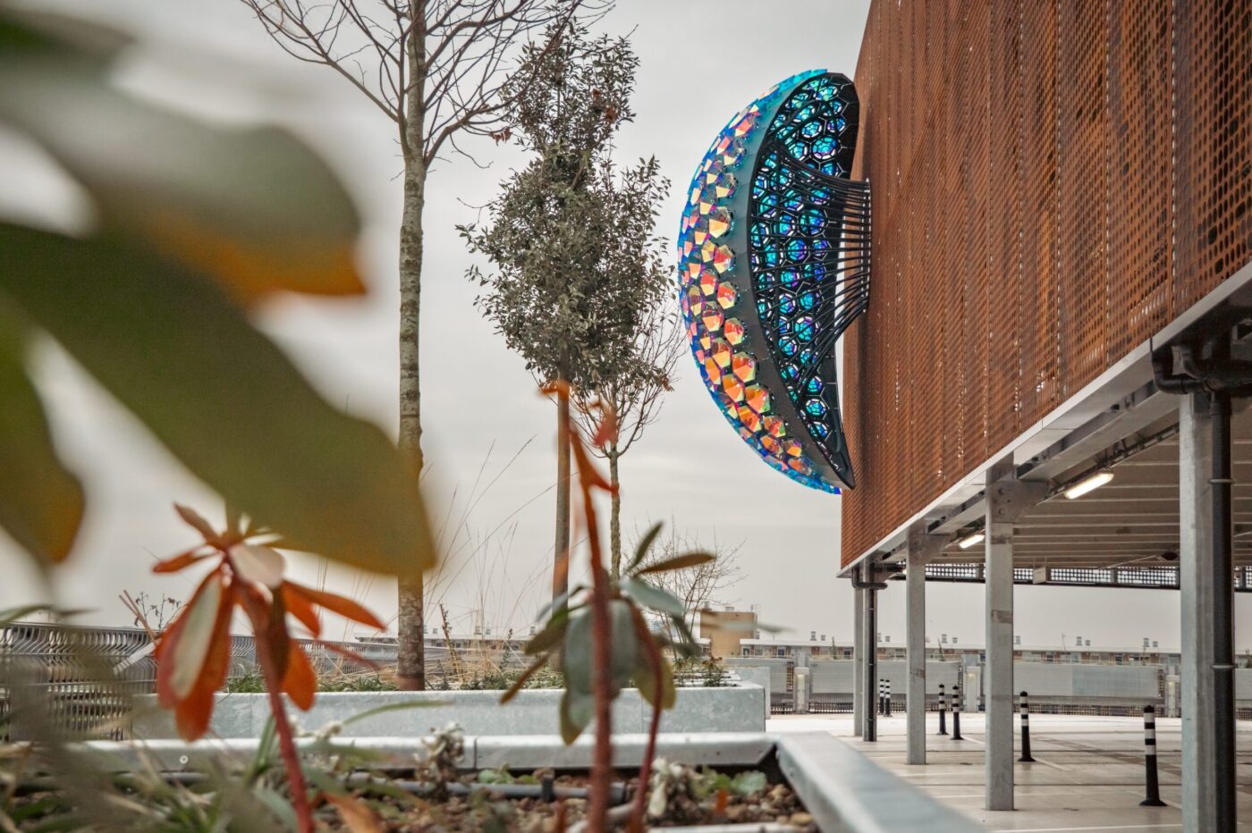 Sustainability is a fundamental component of the design. Rainwater is collected and reused for the irrigation of greenery and the future Oertuin, while 454 photovoltaic panels contribute to the building’s energy supply. The façade artwork In the Eyes of Sibylla Merian by artist Giny Vos gives the building a strong public and cultural presence, reinforcing the theme of biodiversity.