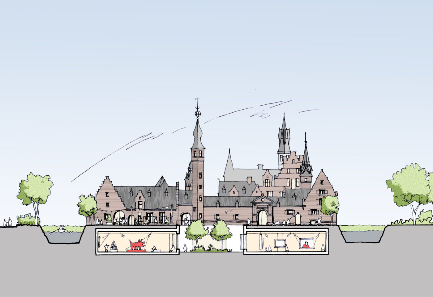 Because the existing building is not suited to a fully equipped museum, the design introduces a refined, sunken extension that discreetly integrates new functions into the landscape. This subtle intervention preserves the silhouette and spatial character of the castle while unlocking its potential for contemporary use. Past and future merge seamlessly, creating a dialogue between the historic architecture and a new layer of public experience.